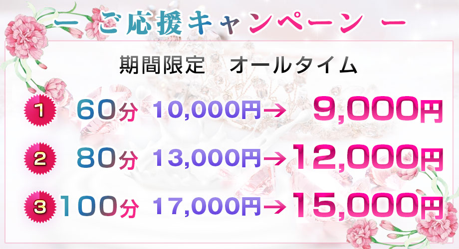 仕事で無理をしがちな貴方、いつも節約で心にゆとりがない方、そんな人達に是非、安らぎと健康をプレゼントしたいと思っています。たまには、女性の素晴らしさを肌で感じて、最高の癒しに包まれて下さいね。貴方を裏切らない癒しのその先へ…究極を追い求めて攻めていきます!